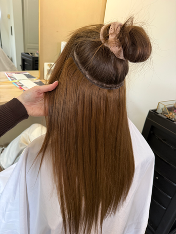 Doordat er nietmeer word gewerkt met naald & draad is het bandje zelfs iets platter en voelt het minder strak aan de haarwortel, ze worden nogsteeds met siliconen beads geplaatst, en geven dus geen schade aan eigen haar!